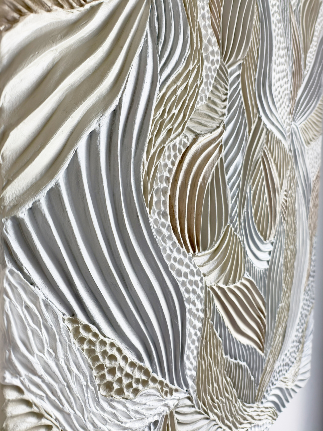 Kolekce COLORED představuje strukturální obrazy, které kombinují více barev v klidných, zemitých odstínech. Na rozdíl od mých monochromatických kolekcí jsou tyto práce barevné, ale vždy s jemnou, tlumenou paletou, která vnáší do prostoru harmonii a přirozenost.