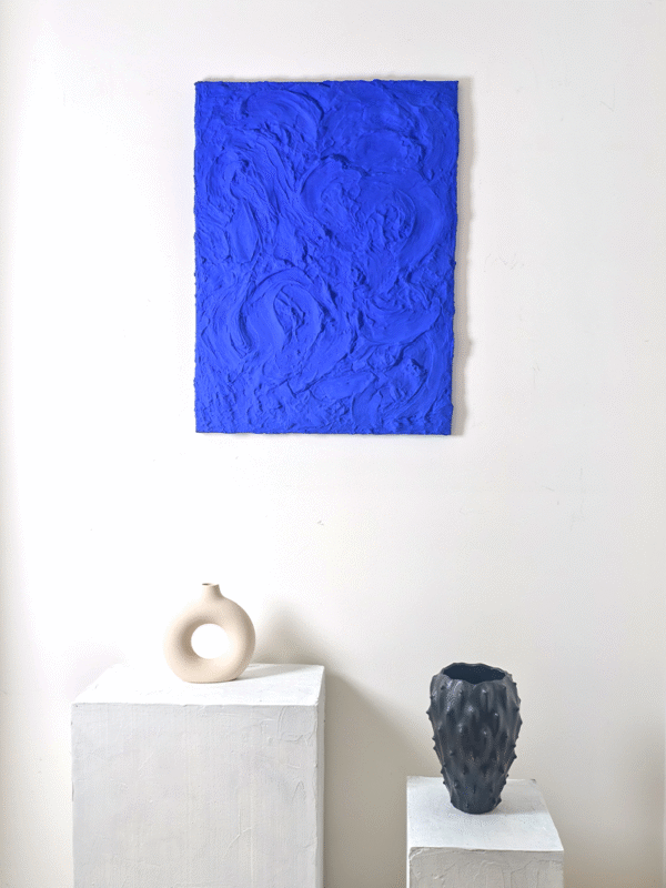Ultramarínová modř dodává dílu moderní, výrazný a zároveň meditativní charakter. Obraz působí jako energetický prvek interiéru – přináší pocit čistoty, svobody a plynutí, ale i vizuální hloubku, která prostor zklidňuje.
