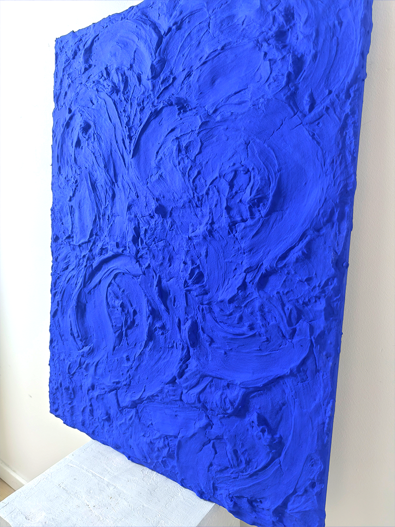 Obraz Deep Flow je poctou síle a tajemství vody. Celý je vytvořen v intenzivním ultramarínově modrém odstínu, který symbolizuje hloubku oceánu, nekonečnost i klidnou energii. Strukturální reliéf vytváří dynamické proudy a vlny, jež připomínají pohyb vodní hladiny a proudění pod hladinou.