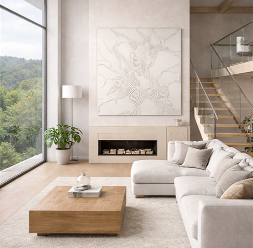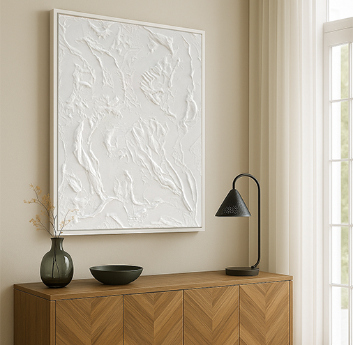 Stačí mi poslat fotografii místnosti a já vám připravím profesionální vizualizaci s vybraným dílem. Uvidíte, jak obraz ladí s okolním prostorem, nábytkem a barvami.
